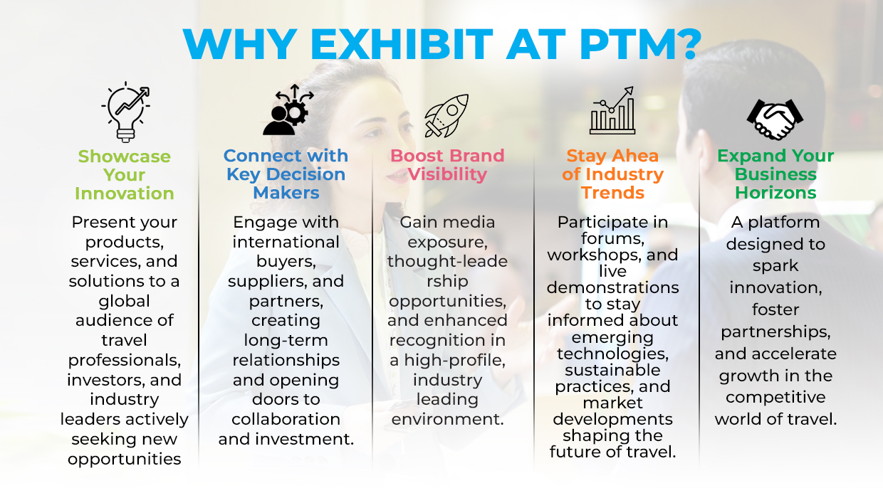 Whether you are in hospitality, leisure, aviation, technology, or corporate travel, PTM offers a platform to build strategic relationships, expand your market reach, and influence the future of travel.